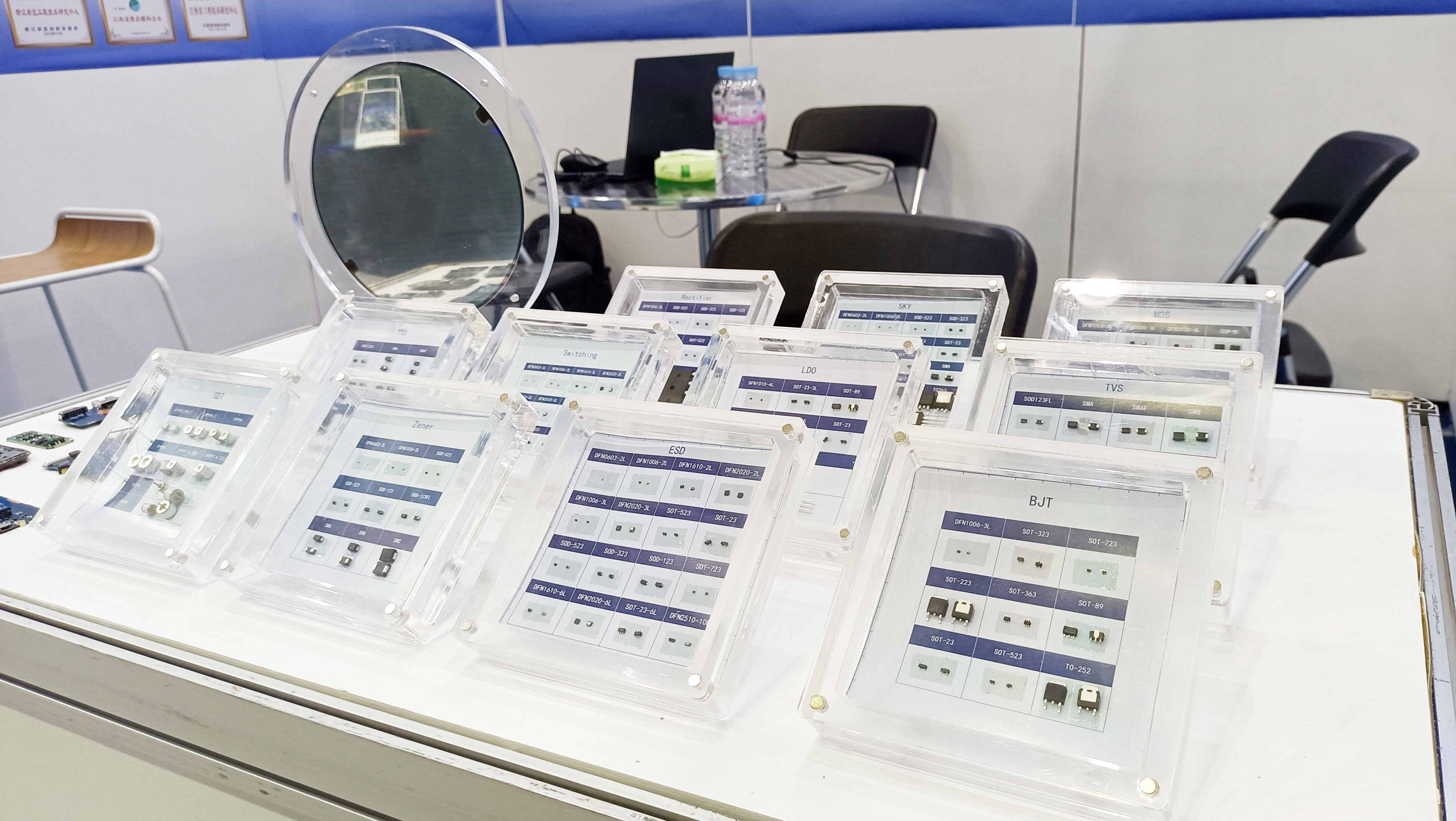 MILE米乐微电子展示了多款主营产品,包括保护器件、二三极管和MOSFET、模拟IC等。